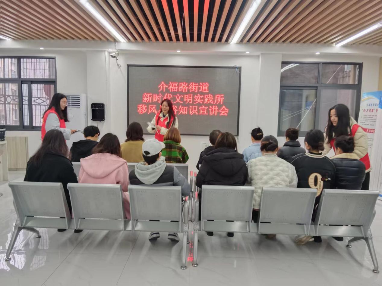 为进一步弘扬中华民族优秀文化和传统美德,践行新发展理念,引导群众破旧俗、树新风,2024年2月19日,介福路街道新时代文明实践所积极组织辖区群众开展移风易俗知识宣讲会。