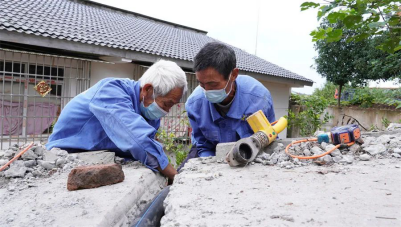 响堂村村民以前是用的经过净化后的井水,常年“靠天吃水”。“之前虽然经过了处理,但大家对这样的水仍然不放心。”在施工现场,村民陈胜亿欣喜地说到:“马上就能用上自来水了,大家也能吃得更放心”。