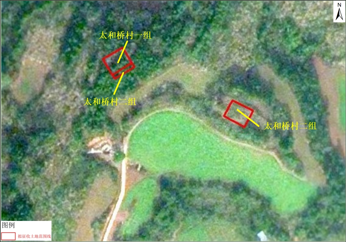 拟征收土地位于保升镇太和桥村1、2组范围内,范围见《拟征收土地范围示意图》(附后),拟征收土地的权属、面积等以土地现状调查面积为准。