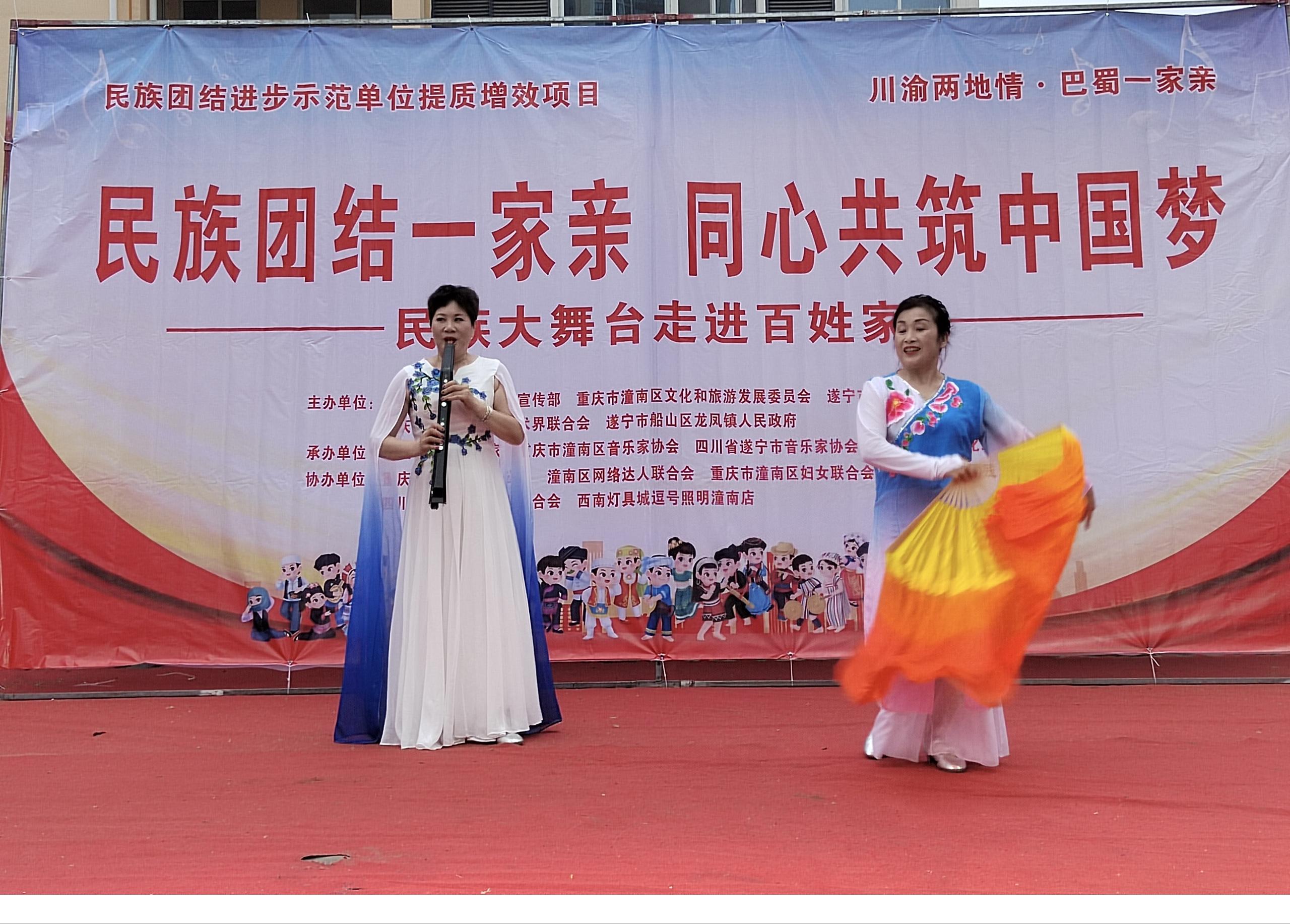 2024年6月16日,为促进民族团结进步创建提质增效,遂潼文化交流互鉴,重庆市潼南区委宣传部、遂宁市船山区委统战部等部门联合在龙凤镇白鹤社区举办主题为“民族团结一家亲,同心共筑中国梦”的文艺汇演活动。当晚,丰富多彩的民族舞蹈、别具特色的民俗表演轮番上演,展现了遂潼共同团结奋斗、共同繁荣发展的良好风貌,博得了现场阵阵掌声。此次活动不仅促进了遂潼两地文化交流,也让遂潼乡村文化融入更加同向同步,推动遂潼文化一体化发展再上新台阶。