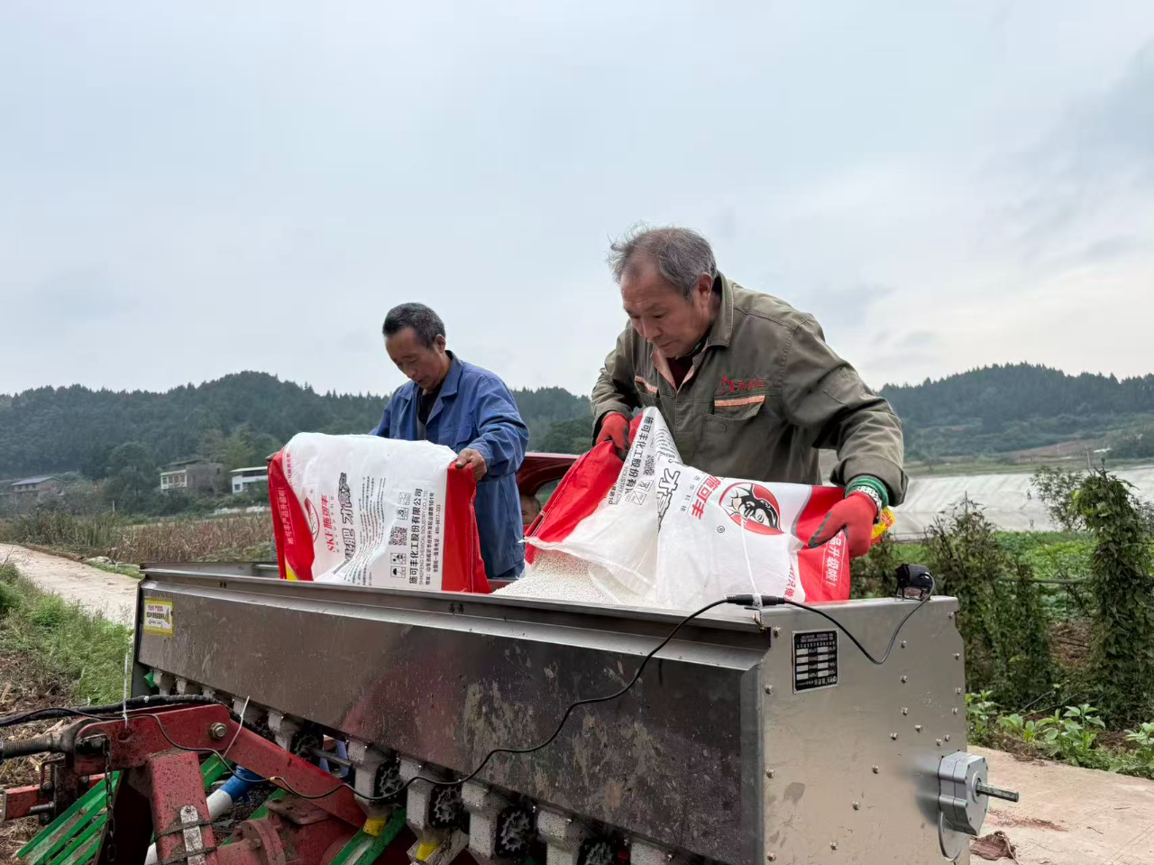 “我们原本规划种植油菜与小麦,不料连日阴雨天气导致油菜错过了最佳播种时机。”桂花镇农业服务中心主任范楷介绍说,为抢抓农时、减少损失,当地迅速调整种植策略,确定整村改种小麦,并针对性选取了川麦93、绵麦903两大优良品种。“这两个品种适应性强、抗病性突出,还兼具高产量、高营养密度与优良品质,完全契合当地种植条件。”