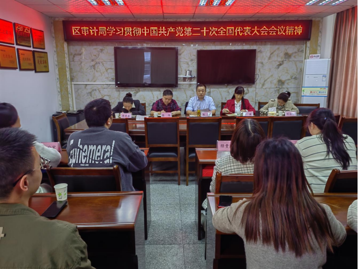 近日,遂宁市船山区审计局召开专题会议,传达学习党的二十大以及省、市、区传达学习党的二十大精神,安排部署学习宣传贯彻工作。局党组书记、局长陈波同志主持会议并讲话,局党组成员及全体干部职工参加会议。