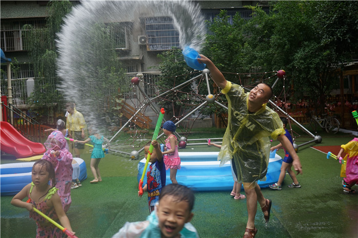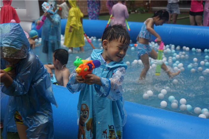 据了解,为开展好此次戏水节活动,顺城街幼儿园做足了准备:分别在各个班级填写问卷表,根据孩子们的意愿,设置他们喜欢的戏水项目,精心购置相关工具……老师先给孩子们强调戏水的注意事项,并对孩子们进行安全方面的教育指导。孩子们在家长和老师的陪伴下来到水池边,有组织地开展戏水游戏。热热闹闹的人群,五颜六色的水枪,你来我往中,飞溅的水花和着欢声笑语.....满满的幸福洋溢在每个孩子的脸庞。此次活动不仅丰富了孩子们的夏日生活,还让他们感受到了集体活动的快乐与温暖,增进了亲子之间的感情。
