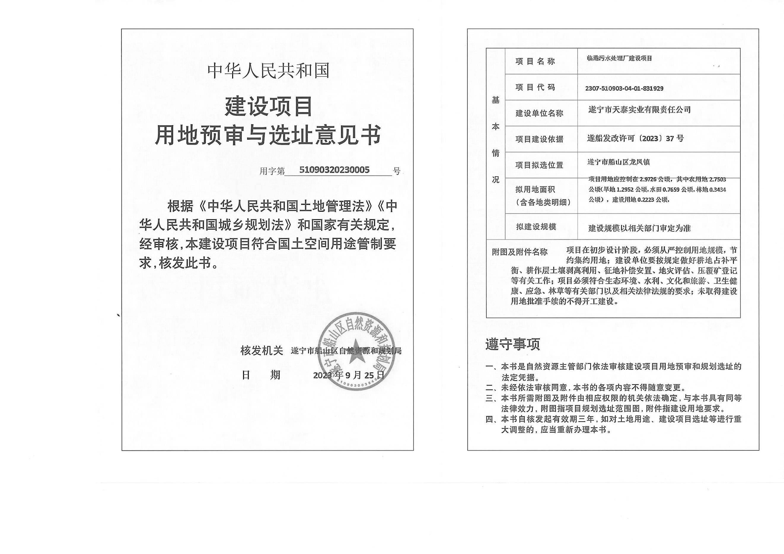 临港污水处理厂建设项目用地预审与选址意见书