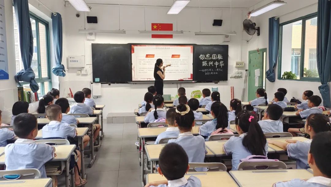 主题班会上,老师带领同学们深入讲解了“九一八事变”的发生背景和历史意义,结合史实资料引导学生深刻感受到中国人民勇敢地同侵略者进行艰苦卓绝的斗争的历史过程,引导学生们要珍惜先辈们用鲜血和生命换来的美好生活,继承和发扬中华民族坚强不屈的优良传统。同学们在国旗下郑重宣誓:铭记历史,勿忘国耻;勤奋进取,自强不息;爱我中华,强国有我!