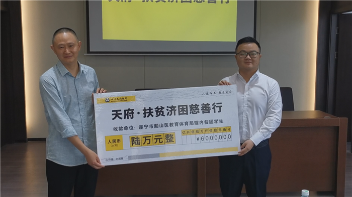 日前,四川天府银行遂宁分行开展“扶贫济困慈善行”活动,向船山区捐款6万元,以资助120名建档立卡贫困家庭学生,惠及全区38所中小学、幼儿园。