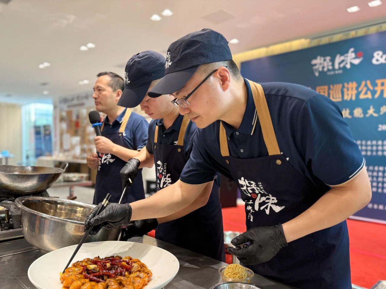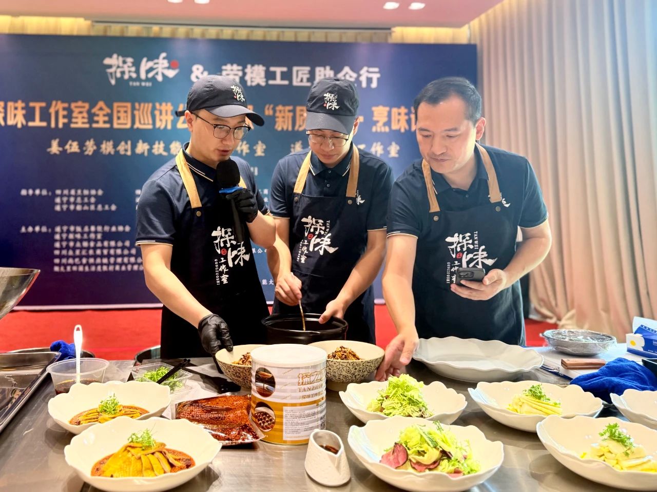 8月5日,“2025劳模工匠助企行行动探味烟火里全国巡讲公开专课第101期”在姜伍技能大师工作室开课。此次活动由遂宁市总工会、船山区总工会指导,遂宁市饭店餐饮行业协会、遂宁探味工作室主办,四川省财贸工会姜伍劳模创新工作室、姜伍技能大师工作室承办,80余位餐饮爱好者踊跃参与。