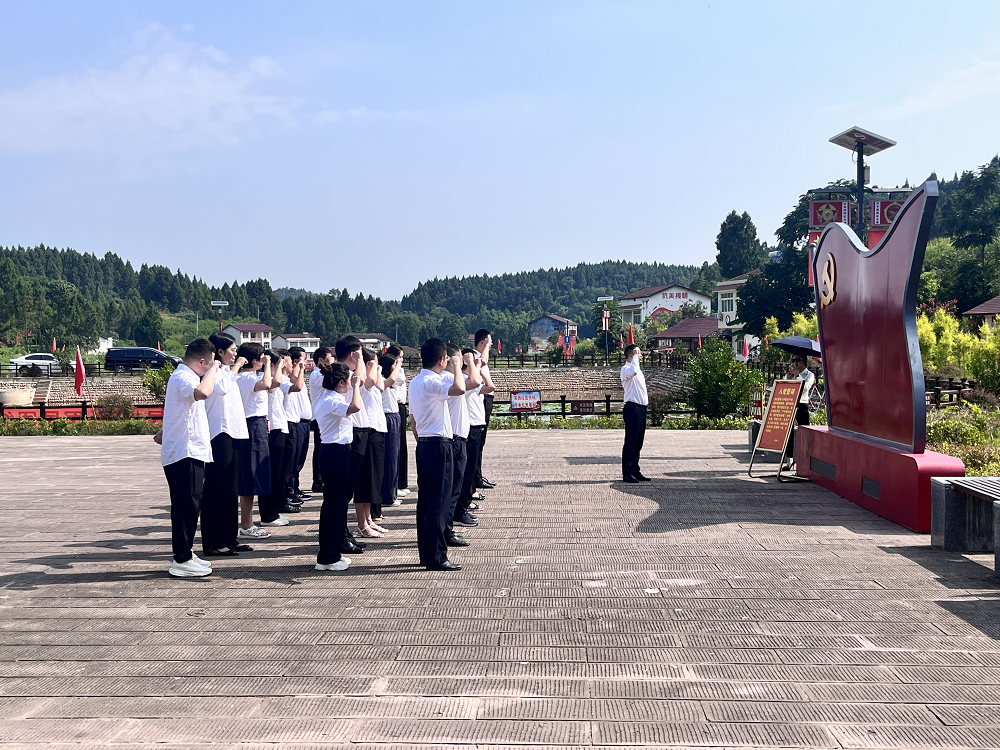 在伍先华故居广场,全体同志着装整齐,庄严列队肃立,怀着沉重和敬佩的心情瞻仰伍先华雕像,并在雕像前重温入党誓词。