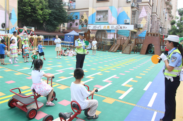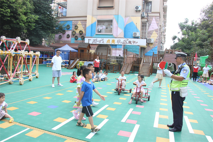 除了解乘车安全、道路安全相关知识外,孩子们还跟交警一起学习交通指挥手势,并亲自体验了一回行人行车安全、安全过马路的情景游戏。此次交通安全宣传教育活动也为孩子们的平安健康、快乐成长提供了有力保障。