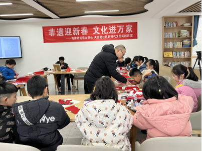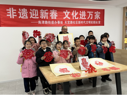 2022年1月12日,南津路街道办事处天宫路社区新时代文明实践站组织开展了迎新年剪纸活动。活动中,胡氏剪纸非遗传承人胡宁老师为大家教授了一些剪纸技艺,从折叠到剪法,一步一步进行细致地讲授,孩子们也按照老师示范的步骤,在红纸上画图、折纸,精心的修剪除了自己满意的作品,个个小脸上都洋溢着喜悦。孩子们纷纷表示这次活动举办的很有意义,既学到了剪纸的相关内容,又为即将到来的新年增添了一份颇具心意的礼物。