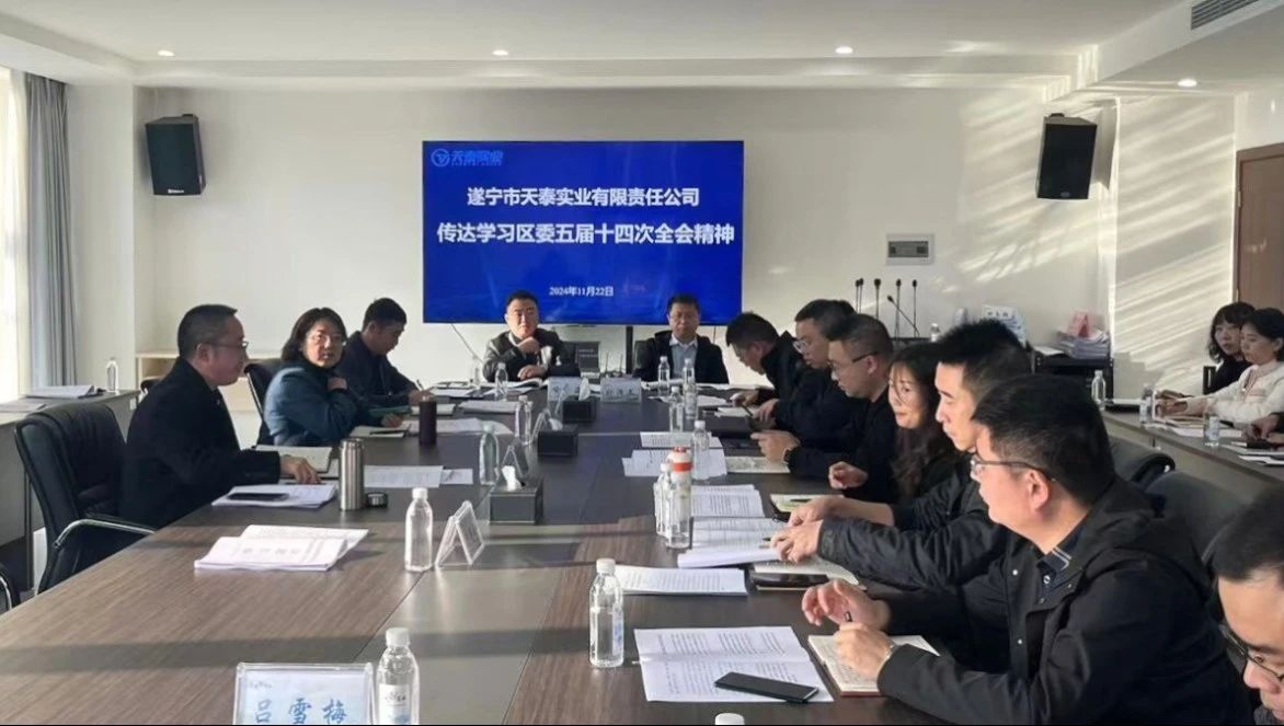 11月22日,天泰实业公司召开专题会议传达学习区委五届十四次全会精神。公司党支部书记、董事长蒲千春主持会议并讲话,全体高管、部室负责人和子公司负责人参加会议。