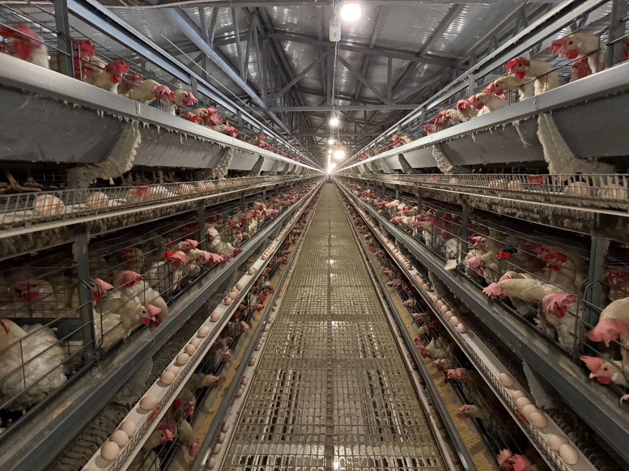 “以前养鸡靠经验,现在靠数据。”基地负责人叶维成指着鸡舍内的智能设备介绍,整个养殖过程已实现全流程数字化管理。在蛋鸡“标准宿舍”里,自动喂料系统会按照设定时间,精准投放由玉米、豆粕、叶黄素等科学配比的饲料,确保每只蛋鸡摄入的营养均衡;环境控制系统则24小时监测舍内温湿度、二氧化碳浓度,一旦出现参数异常,会自动启动通风、调温设备,为蛋鸡营造最适宜的生长环境;高清摄像头更是如同 “电子管家”,实时观察蛋鸡的进食、活动状态,若发现病弱鸡,工作人员能第一时间介入处理,有效降低疫病风险。