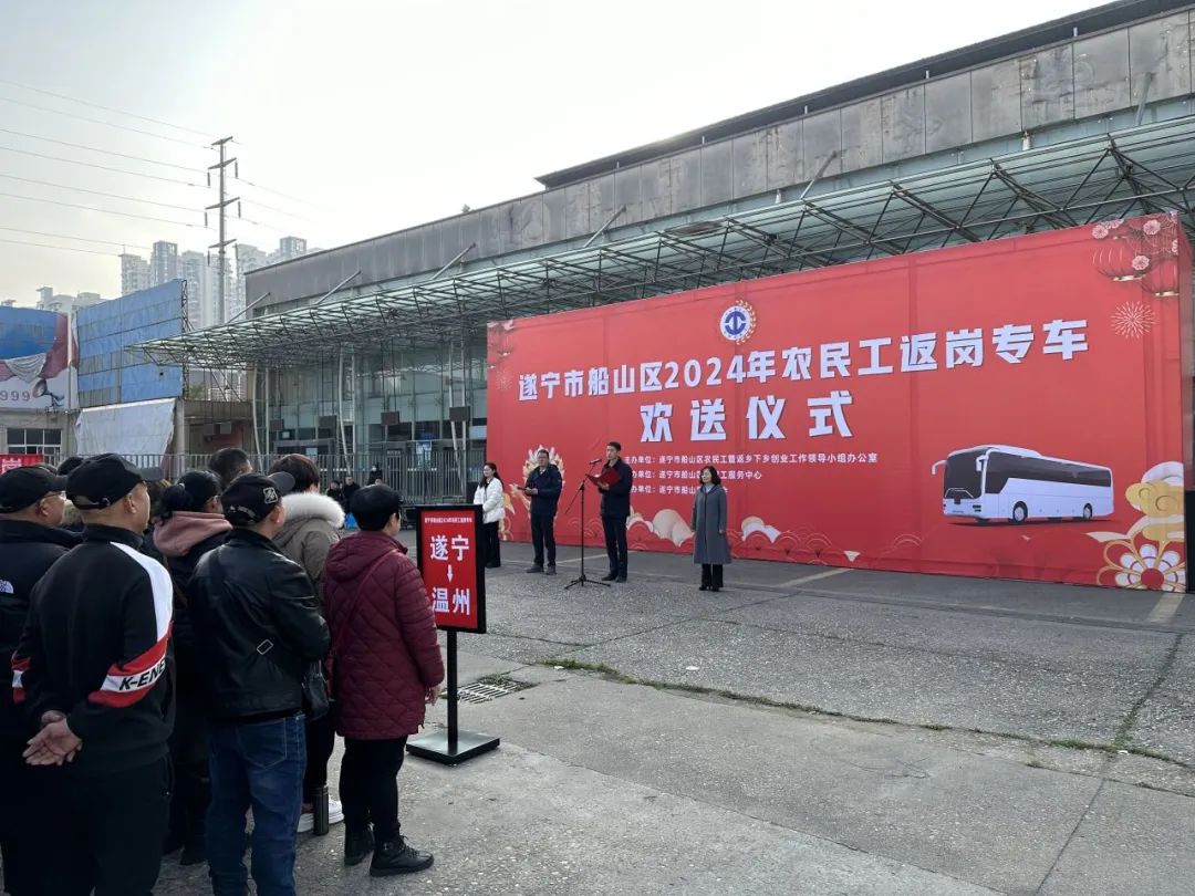 人勤春来早,随着春节假期的结束,不少农民工朋友也踏上了返岗的旅程。船山区农民工服务中心积极组织车辆,帮助农民朋友们点对点返岗出行。2月18日,船山区2024年农民工返岗专车欢送仪式举行,船山区委常委、副区长胡瑞杰出席欢送仪式。