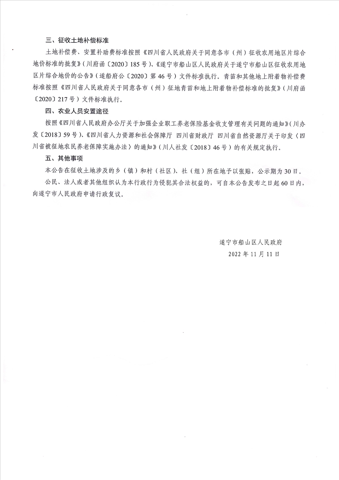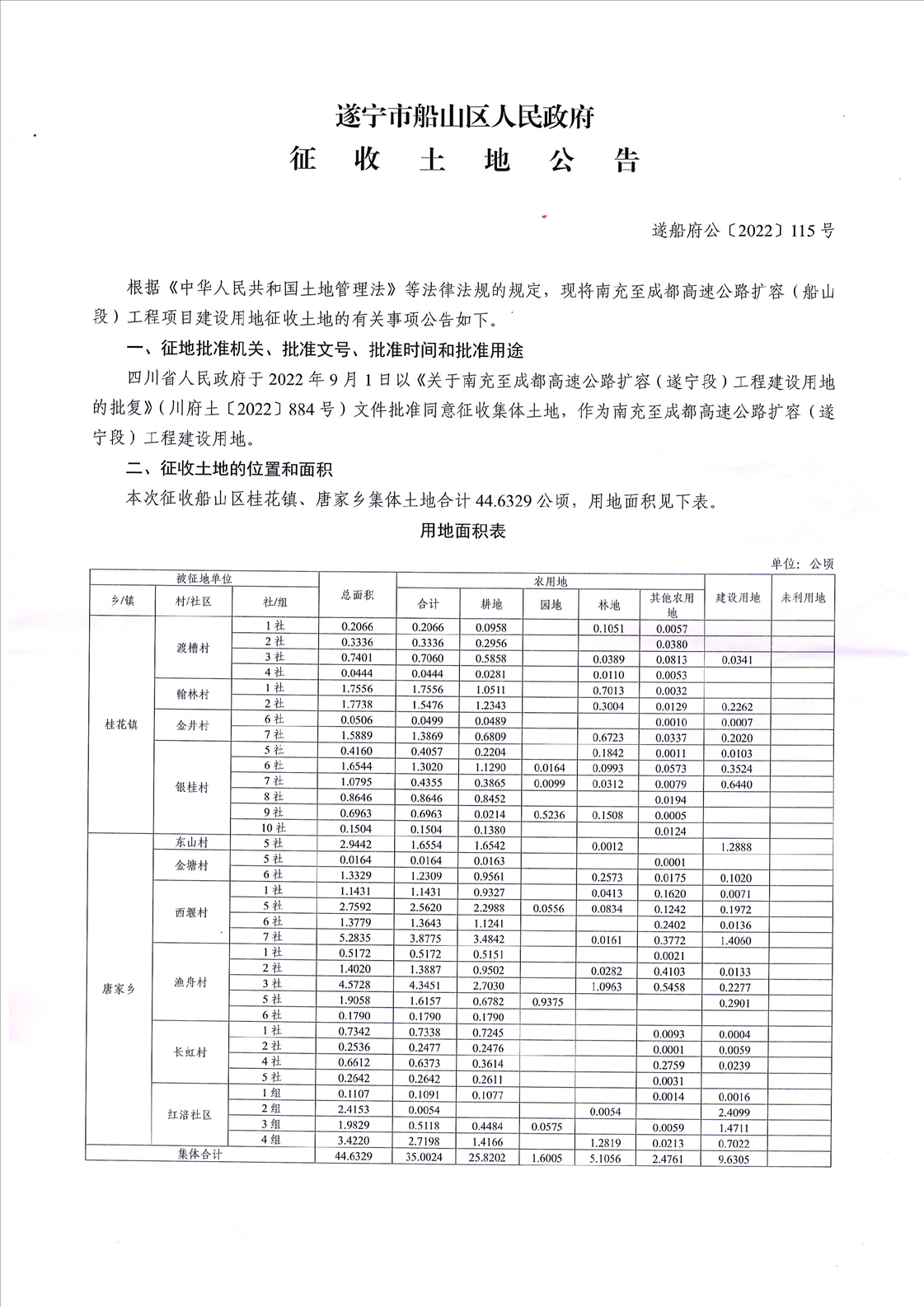 遂宁市船山区人民政府征收土地公告 遂船府公〔2022〕115号