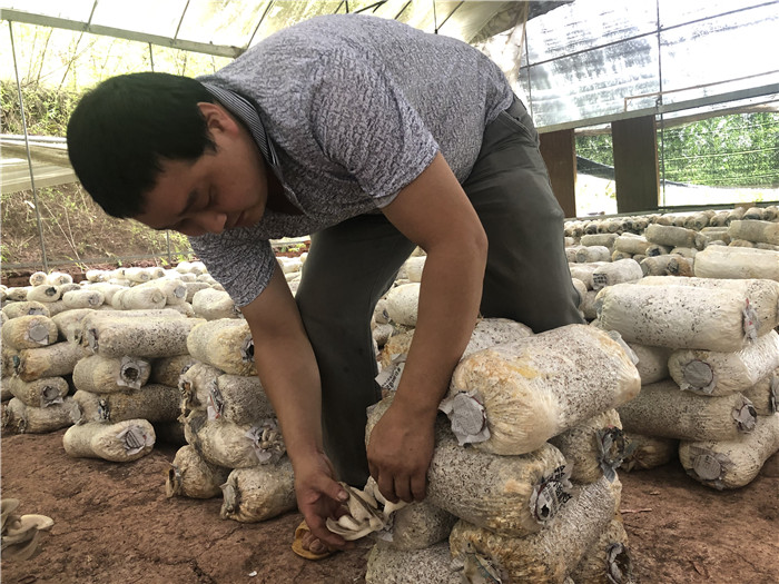 日前,记者来到龙凤镇大白塔村顺情种植专业合作社的蘑菇基地,看到邓先建在仔细检查蘑菇的生长情况。邓先建告诉记者,这些蘑菇都是运用自己创新研发的新技术在进行种植,新技术种出的蘑菇饱满鲜美。基地里还全方位安装了喷头,在天干时实行人工降雨,保证全年种植基本没有空档期。邓先建的蘑菇基地在2019年产量达到了50万斤。