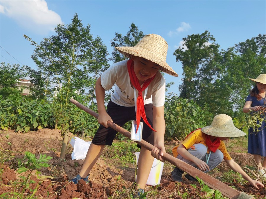 在老师的讲解和示范下,孩子们知晓了收花生的相关技术要领。随后,大家分好小组,带齐工具,有序来到学校劳动实践基地,热火朝天地干起来。