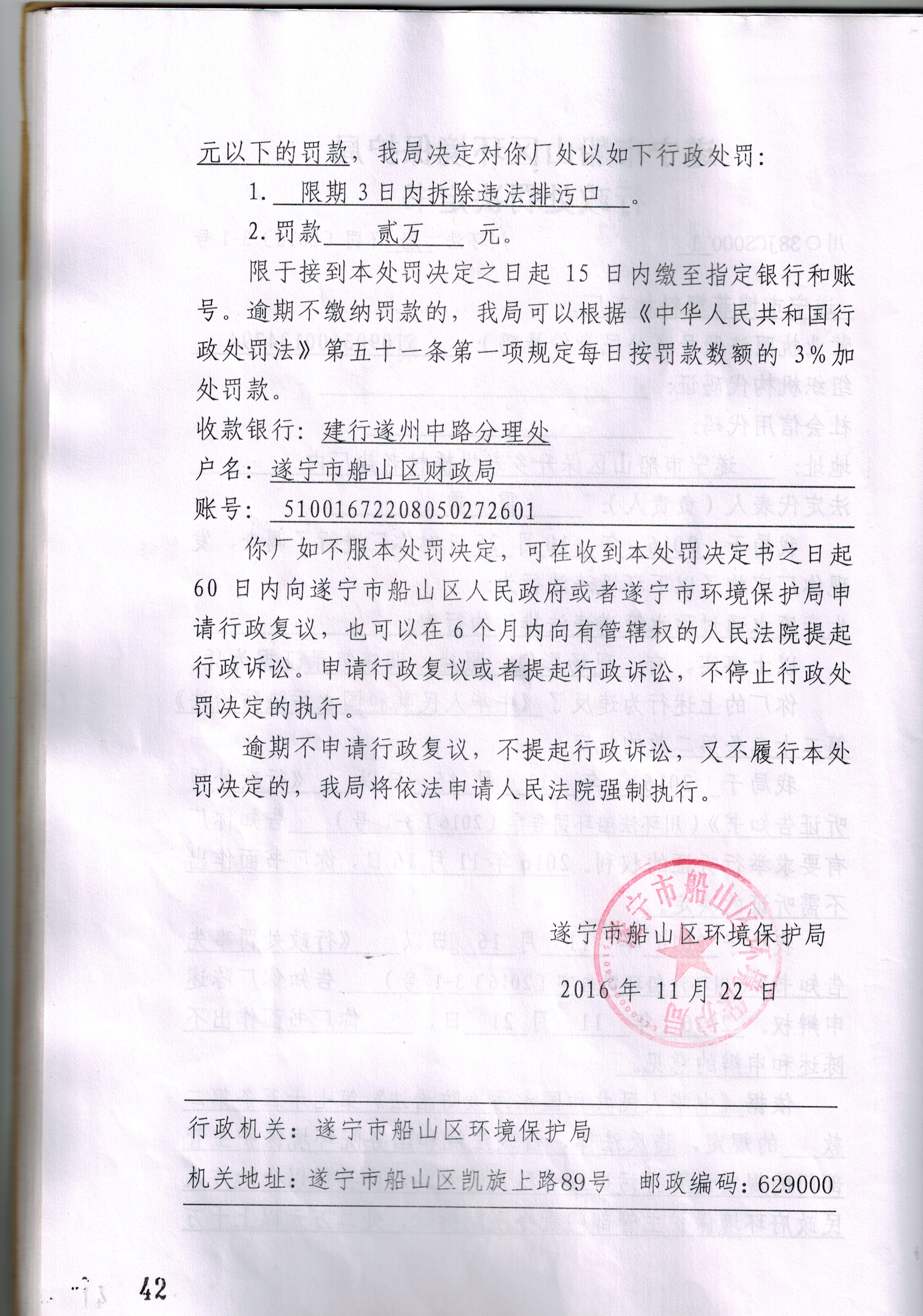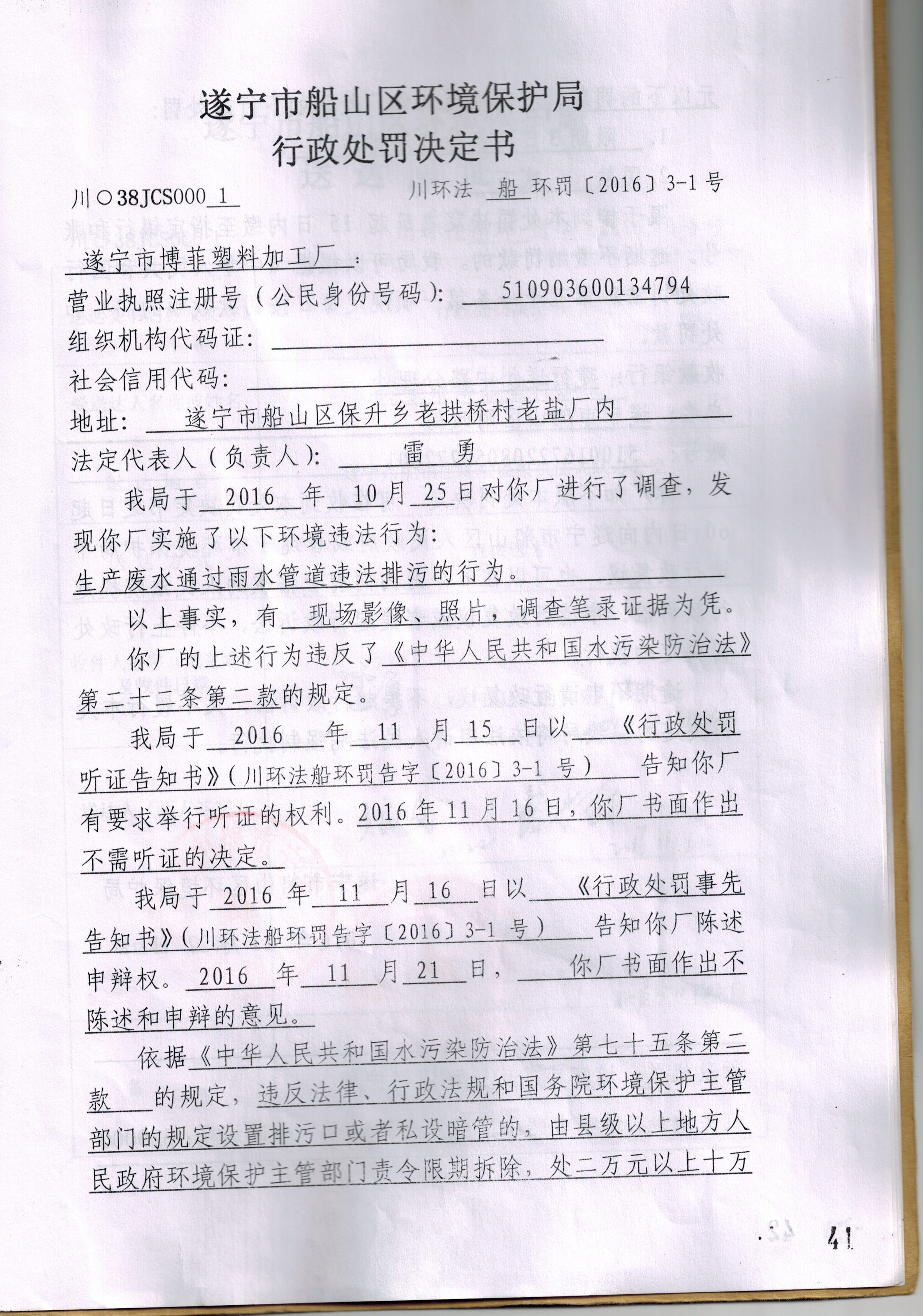 遂宁市船山区博菲塑料加工厂行政处罚决定书