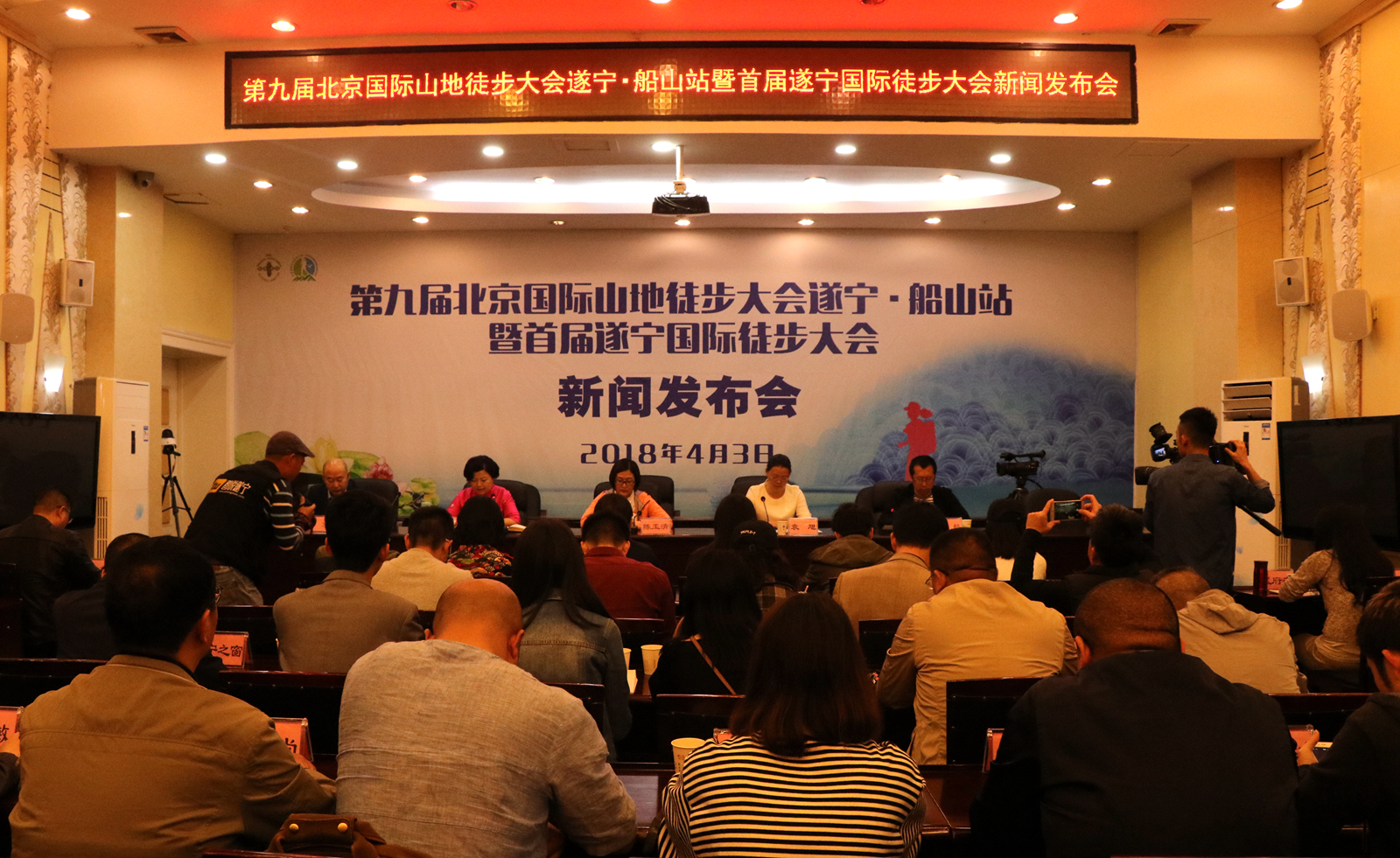 4月3日上午,遂宁市船山区召开第九届北京国际山地徒步大会遂宁·船山站暨首届遂宁国际徒步大会新闻发布会。遂宁市体育局副局长陈玉清,船山区委常委、宣传部部长、总工会主席袁旭出席发布会,船山区副区长毛金花主持发布会。