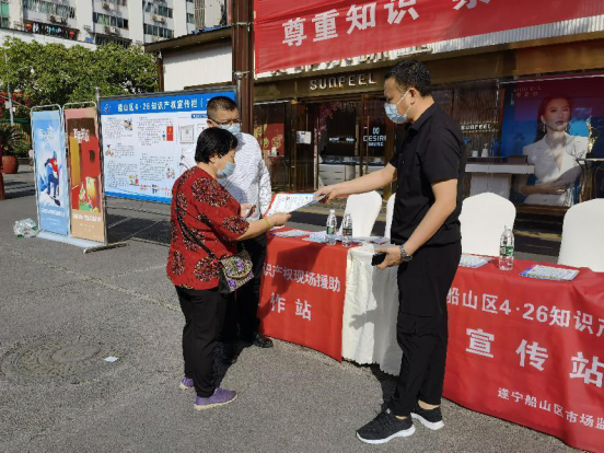 在第22个世界知识产权日来临之际,船山区市场监管局组织开展以“全面开启知识产权强国建设新征程”为主题的4.26知识产权“七个一”宣传活动,进一步巩固国家知识产权强县工程示范区建设成果,推动船山创新发展营造良好宣传氛围,以实际行动迎接党的二十大胜利召开。