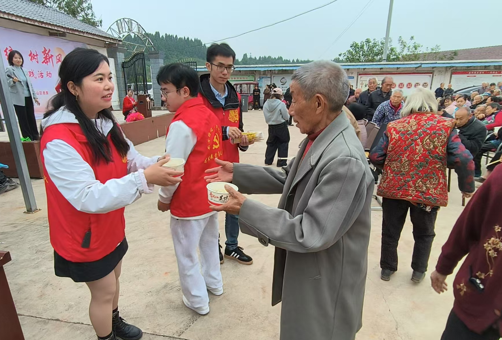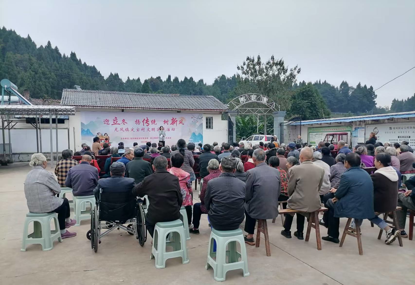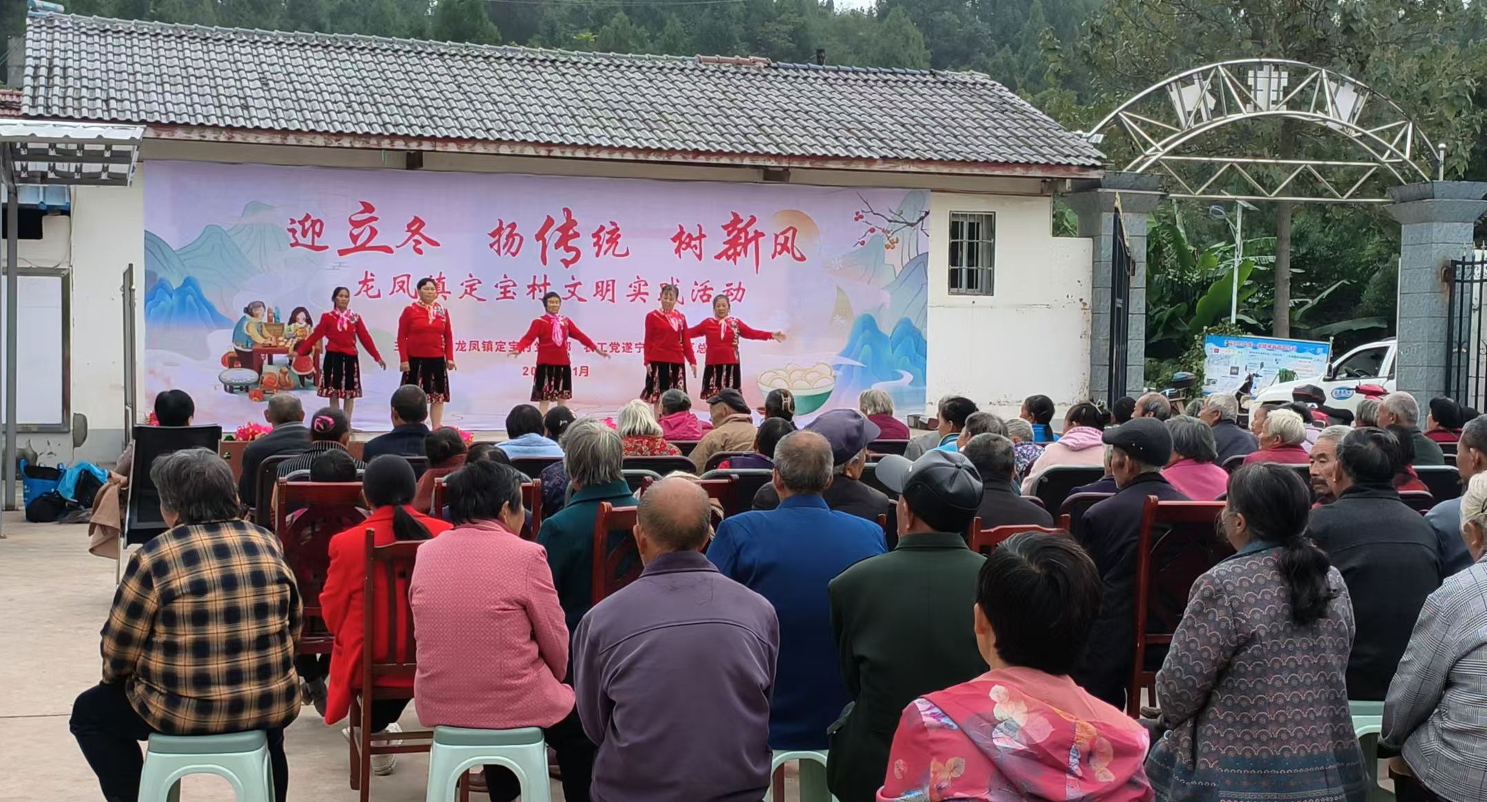 11月7日下午,为了弘扬中华民族传统文化,培育文明乡风、良好家风、淳朴民风,为群众送祝福、送温暖、送健康,龙凤镇定宝村组织开展“迎立冬 扬传统 树新风”文明实践活动,农工党船山区总支党员、龙凤镇机关部分党员、定宝村全体党员、群众代表、驻村工作队员等220人参加。