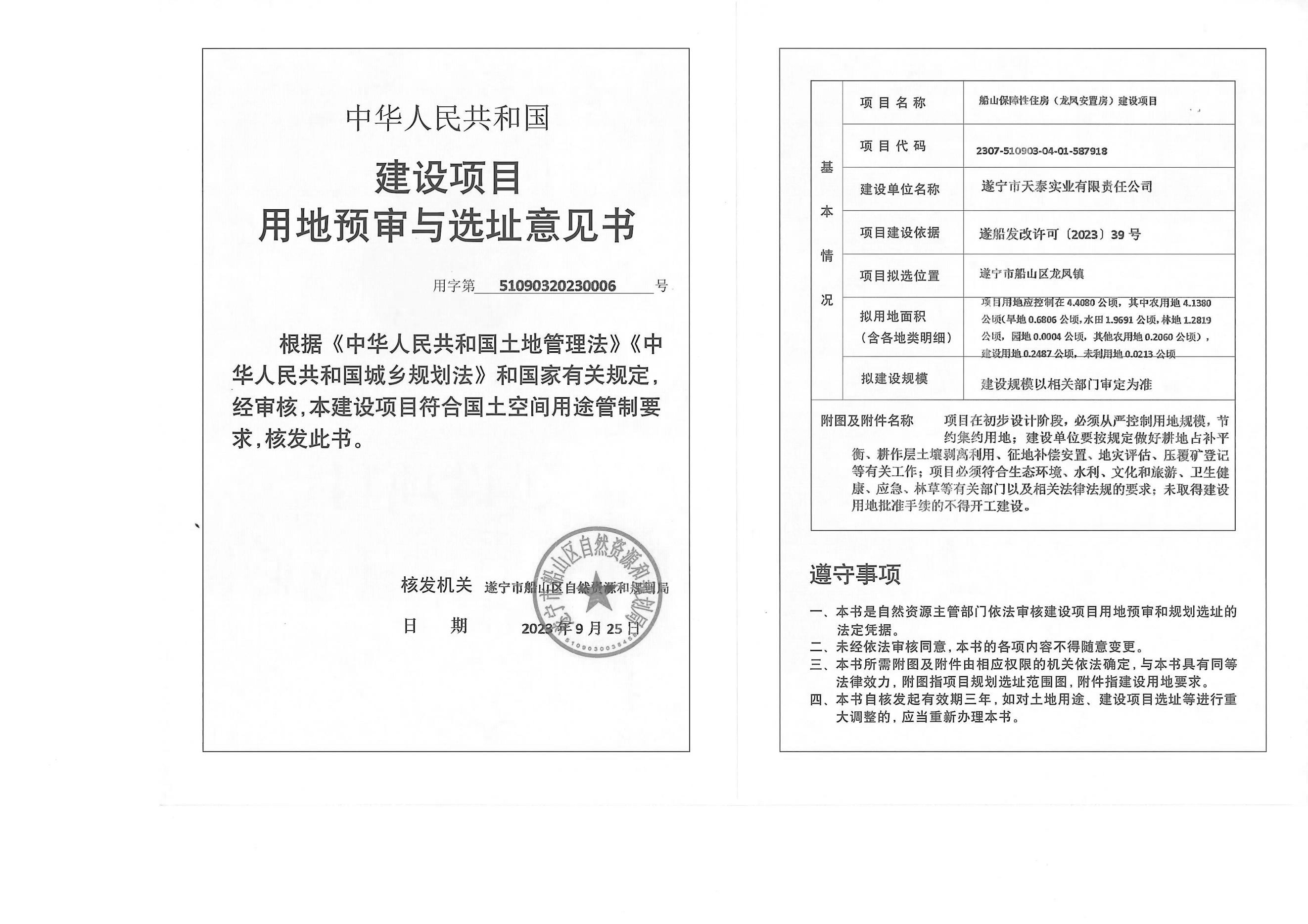 船山保障性住房(龙凤安置房)建设项目用地预审与选址意见书