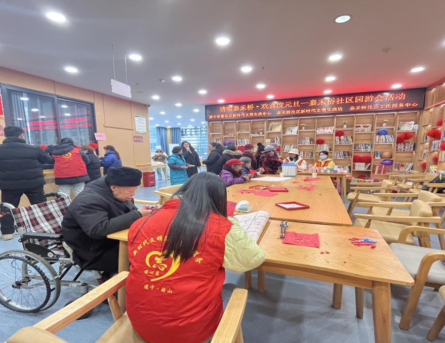 2023年12月28日,介福路街道嘉禾桥社区携手江油市向阳社会工作服务中心组织辖区居民在社区二三楼开展“情暖嘉禾桥 欢喜度元旦”社区游园会。下午两点半,嘉禾桥社区元旦游园会正式拉开帷幕,活动设置了欢乐投沙包、元旦投壶、蒙眼贴福、元旦剪纸、猜灯谜等趣味游戏。