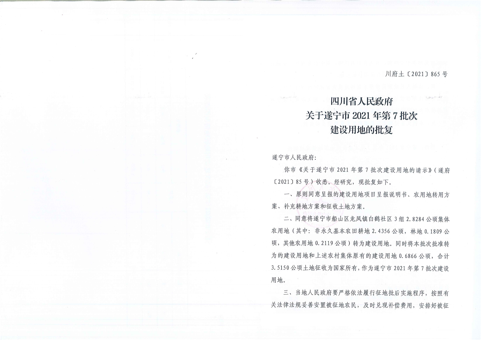 四川省人民政府关于遂宁市2021年第7批次建设用地的批复