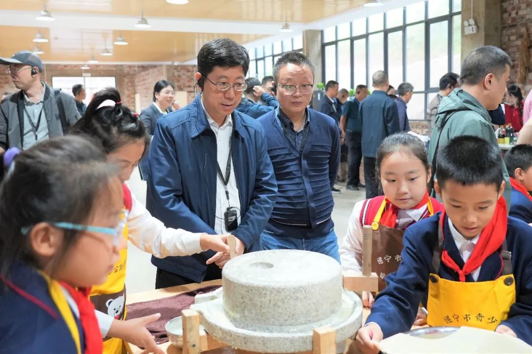 与会人员参观了遂宁市青少年综合实践基地的“衣、食、住、行、耕”五大场馆,了解了基地建设、管理运行以及课程设置等情况。大家对我区劳动实践教育工作方面的做法和思路给予了充分肯定,并表示,遂宁市青少年综合实践基地坚持“生活即教育,田园即课堂”理念,积极开展科普教育,引领学生开放、自由、快乐研学实践,拓宽了大家的劳动实践教育思路,提供了好的经验。