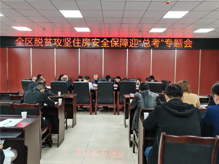 会议传达了近期中、省、市、区脱贫攻坚会议精神和市委书记邵革军在市脱贫攻坚领导小组第十八次会议上的重要讲话精神。会议强调,各部门和乡镇要提高政治站位,切实增强脱贫攻坚住房安全保障迎“总考”紧迫感。务必要在最后关键时刻加强干部队伍思想政治教育,激发干部职工和广大群众决战决胜脱贫攻坚战的昂扬斗志,进一步压紧压实各部门、乡镇、村责任,以严谨、务实、高效的工作作风,全力以赴、认真备考。要再次组织开展全面查漏补缺,采取有效措施,及时解决存在的问题,务必要坚守“人不住危房”“危房不住人”底线。