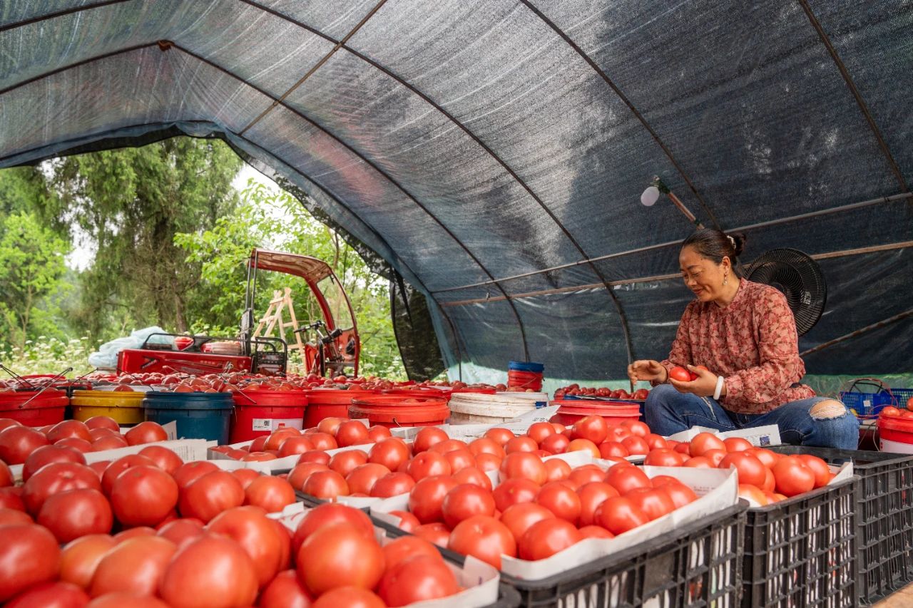 王代兵种植西红柿6年了。头几年,她在村上流转了100亩土地,种植西红柿。“去年在老池镇干部引荐下,我又在村里7组扩种了20亩地,种植西红柿、水果黄瓜、西瓜、小番茄等,产量预计达40吨,产值有望突破40万元。”