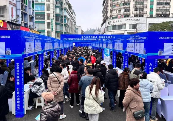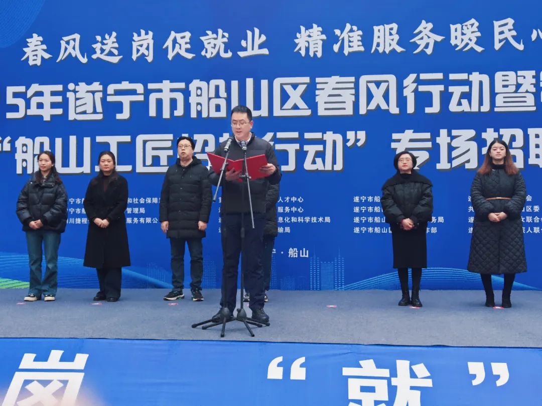 2月25号上午,2025年遂宁市船山区春风行动暨第六届“船山工匠招揽行动”专场招聘会在市中心商业区百福广场启动,为广大劳动者打造了一场“家门口”的求职就业“盛宴”。