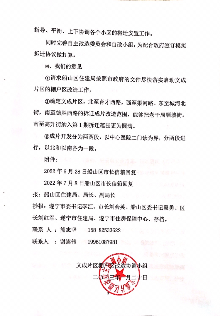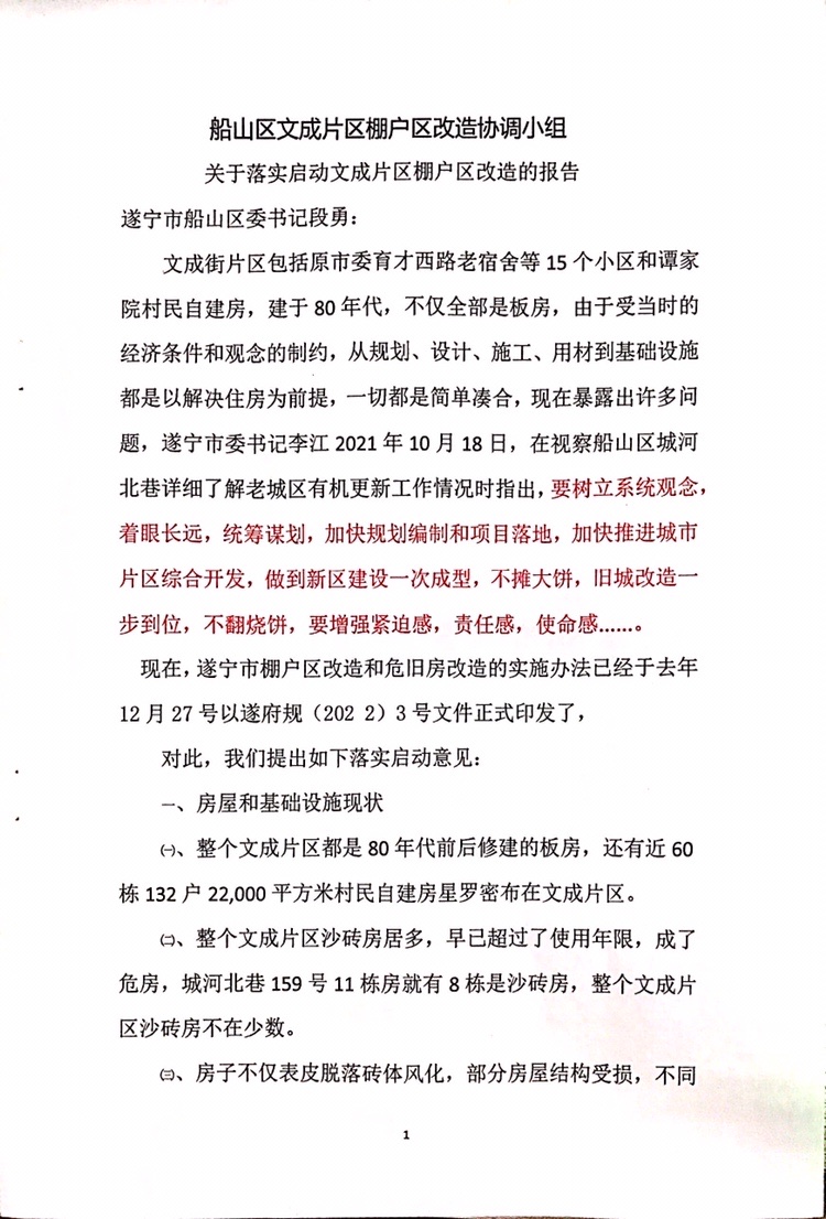 船山区文城片区棚户区改造协调小组关于落实启动文成片区棚户区改造的报告