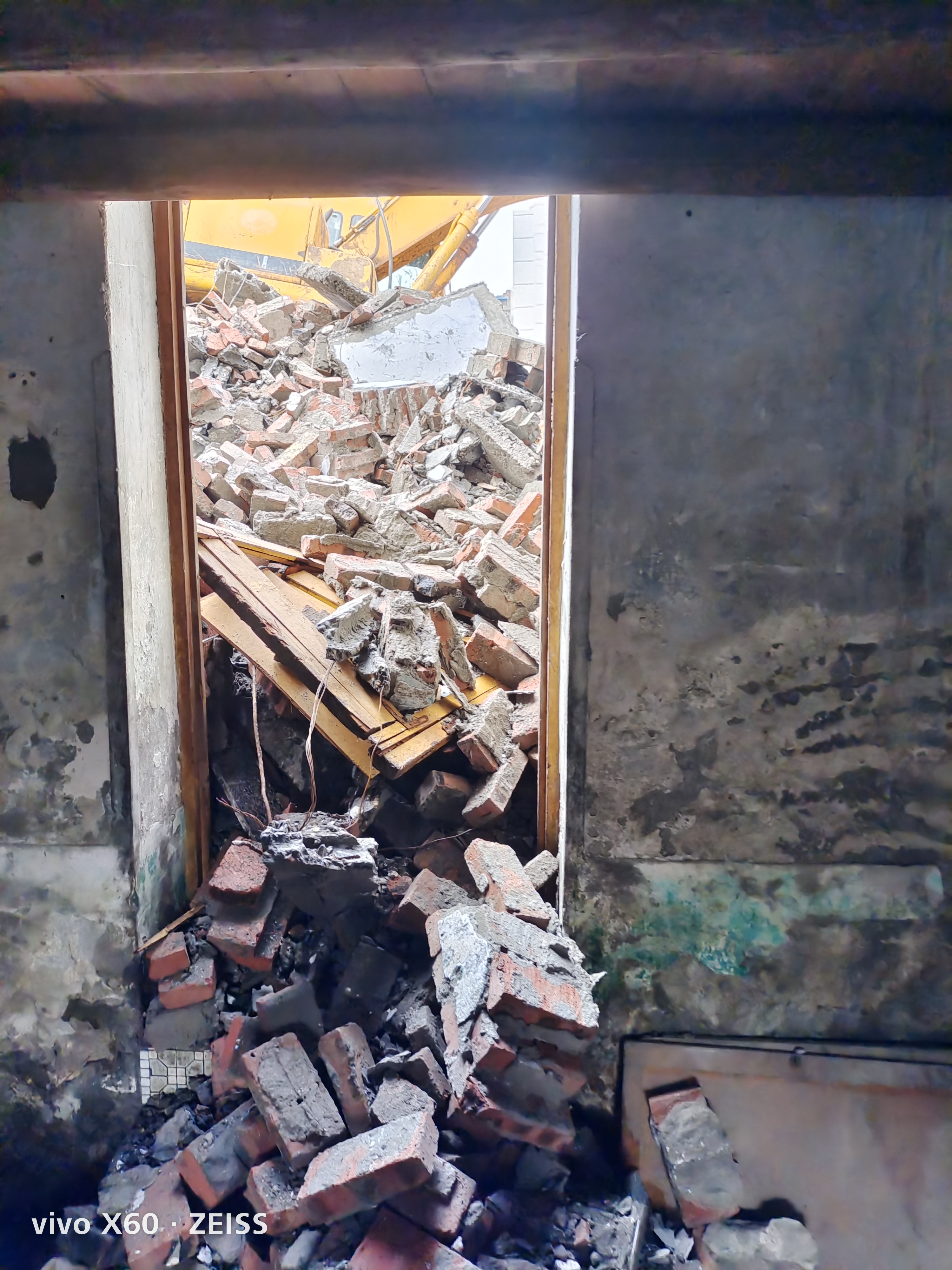 南津北路99号门面后面房屋被拆除一间,前面门面破坏,拆除方为城市梦想开发商。造成正常使用的门面无法使用,破坏方发现门面破坏后不通知我,造成门面货物受损,在我方发现后,没有协商处理下,继续将现场破坏,将墙面,楼顶建筑拉走。