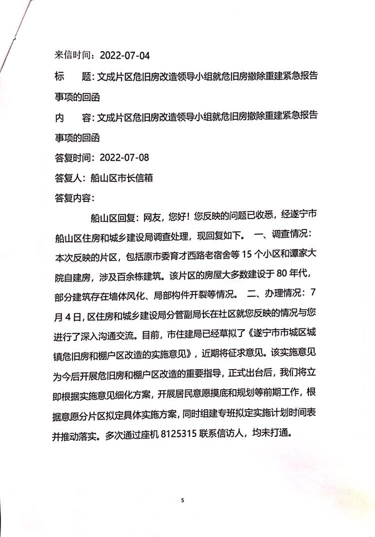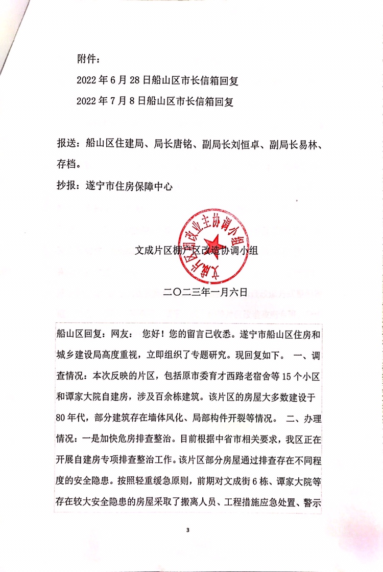 | 来信标题 | 船山区文成片区棚户区改造协调小组 |