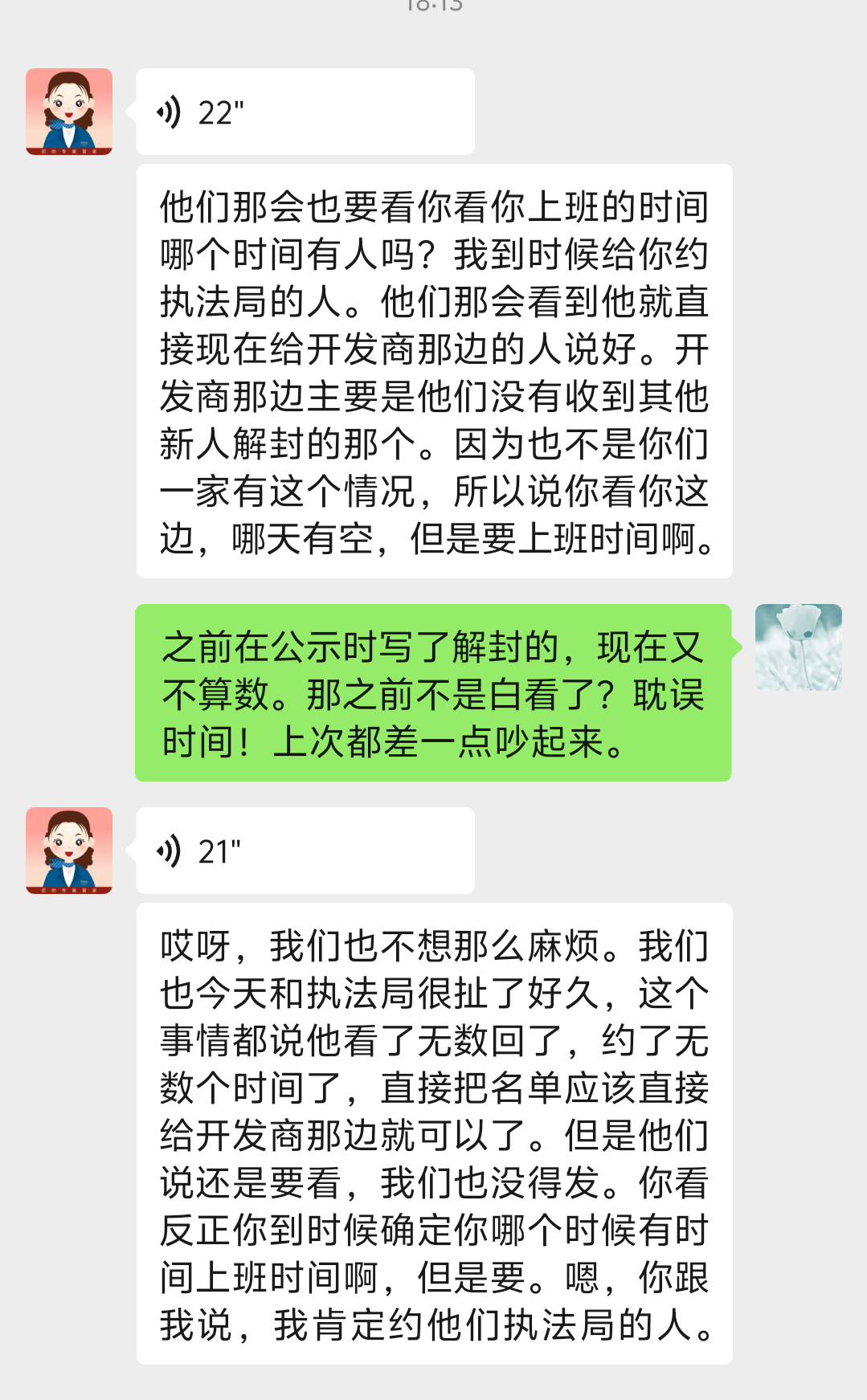 近期要办理产权,物业说我在限制登记的名单上,办不了。这个名单是去年发的,当时就说有问题的提出来,执法局到现场查看。后来执法局派人来查看过,确认我家没有现浇,没有违章搭建,并且在公示栏里列了出来。为什么现在又说不算数,还要重新来看?这不是浪费大家时间吗?上次就因为他们来查看,耽候了我的时间,现在又来第二次,真让人难受。