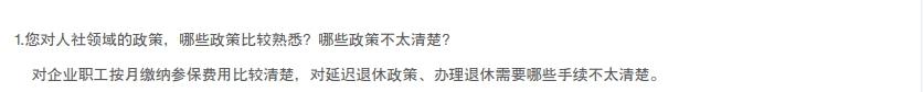 - 1、您对人社领域的政策,哪些政策比较熟悉?哪些政策不太清楚?