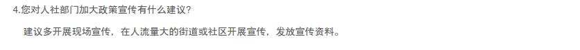 - 4、您对人社部门加大政策宣传有什么建议?