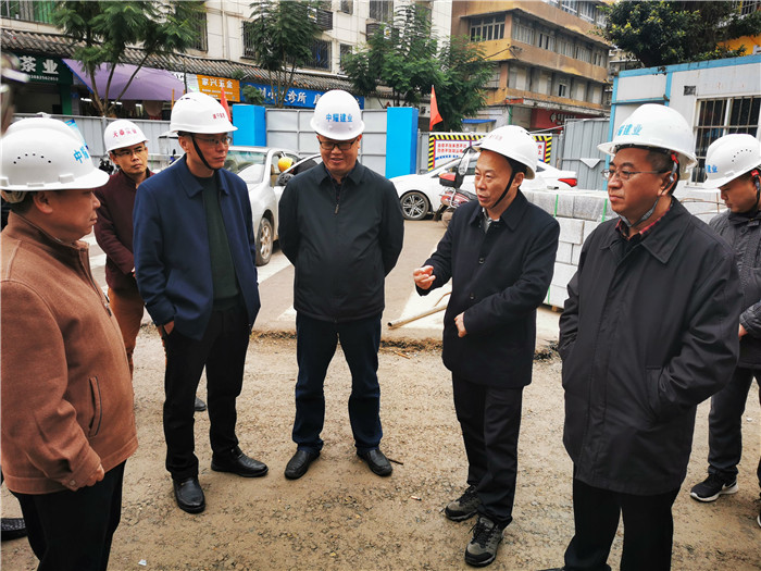 罗孝廉一行到现场实地调研了德胜路道路升级改造项目、沙坝排涝站升级改造及观音湖降水施工项目,详细了解项目施工进度。