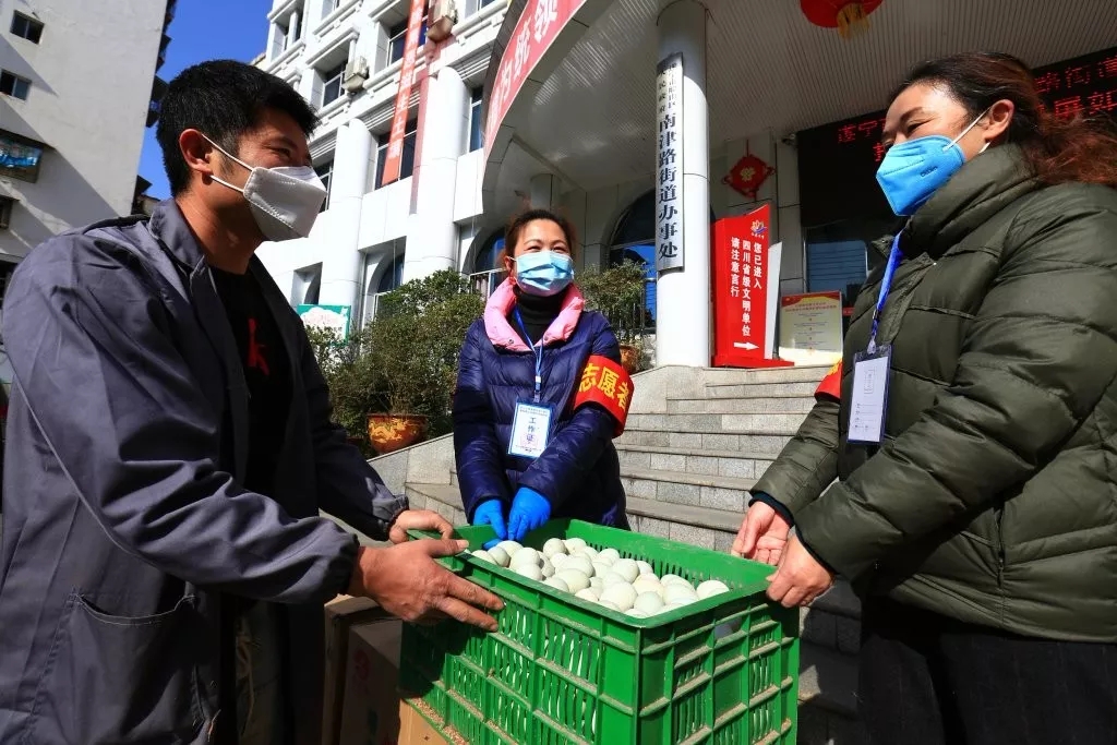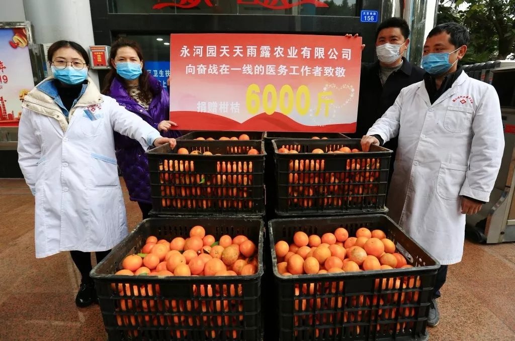 群众自发为工作人员送温暖