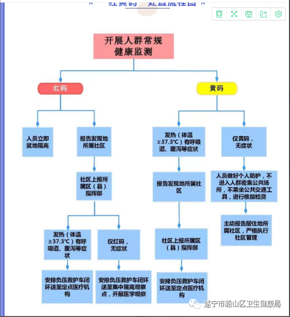 一、发现 “红码”人员,应立即向属地社区报告,做好个人防护,并就地将其隔离,等待转运管理。社区接报后,应立即向辖区指挥部报告,同时开展流调和医学排查并上报调查情况。指挥部立即安排转运至就近集中隔离医学观察场所。