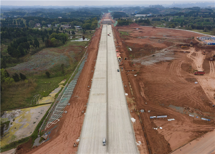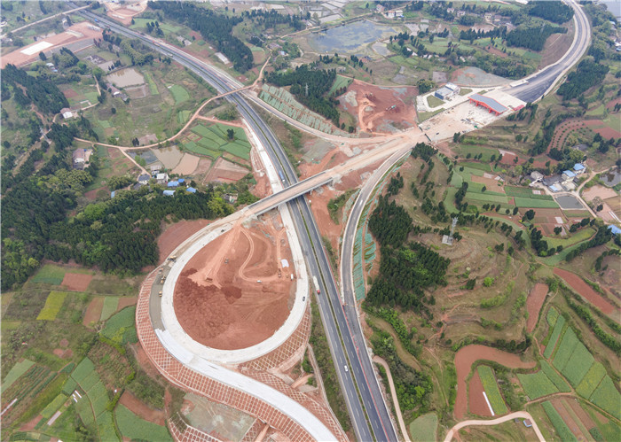 G93遂绵高速公路龙凤互通式立交项目:跨线桥已完成桥面结构层施工并实现通车能力,AB匝道已完成水稳层施工。