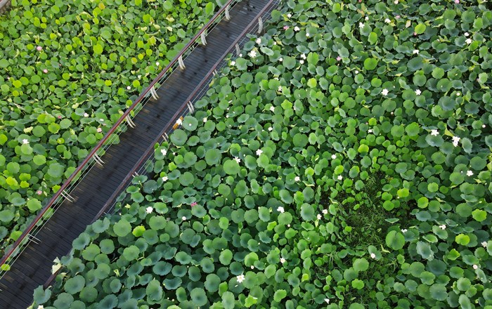 涪江,在遂宁蜿蜒流淌出完美的身段,不仅积淀出风情万种的九莲洲生态湿地公园,也雕琢出荷香四溢的圣莲岛。夏秋时节,岛上来自20多个国家和地区的近1000种荷花竞相绽放。其中,许多还是难得一见的荷莲珍品。荷花品种沿游览线路逐一布置,串联起条条“荷谐”之路:荷花园,荷花人,荷花节……世间万物,唯有花开锦绣,总是美轮美奂,谁也禁不住花开的诱惑:“处处花开,步步莲香”的曼妙意境以及“接天莲叶无穷碧,映日荷花别样红”的波澜壮阔。