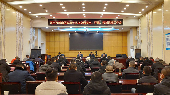 1月6日,船山区召开2021年水上交通安全、环保、禁捕退捕工作会。会议通报了近期水上交通安全、环保工作情况,安排部署了下阶段涪江流域船山段禁捕退捕工作。副区长吴强,区交通运输局、区应急管理局、区水利局等部门以及相关乡镇、企业、船舶负责人参加会议。