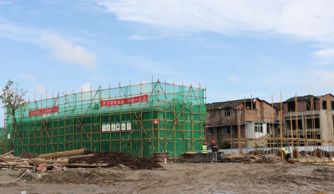 10月7日上午,记者在船山区圣平岛田园综合体项目(一期)建设现场看到,挖掘机、推土机轰鸣,运输车、工程车穿梭。在项目商业街施工区域,50余名工人正在搭建三、四、五号楼主体结构的内外钢架。目前,商业街已完成一、二、十一号楼的主体结构,三、四、五号楼将在本月17日前完成主体结构施工。