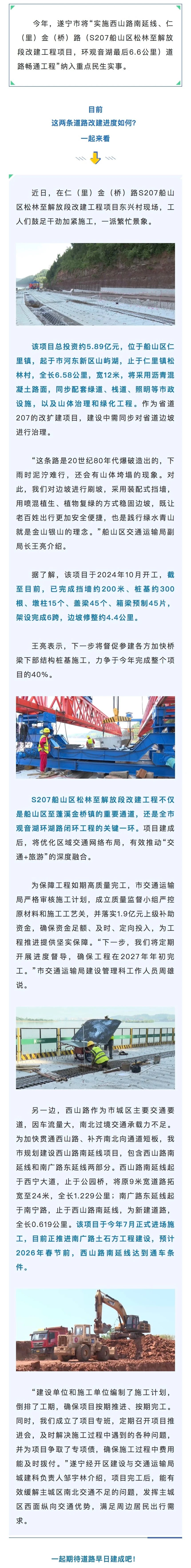 破瓶颈、连环线!遂宁两条关键道路工程建设全速推进