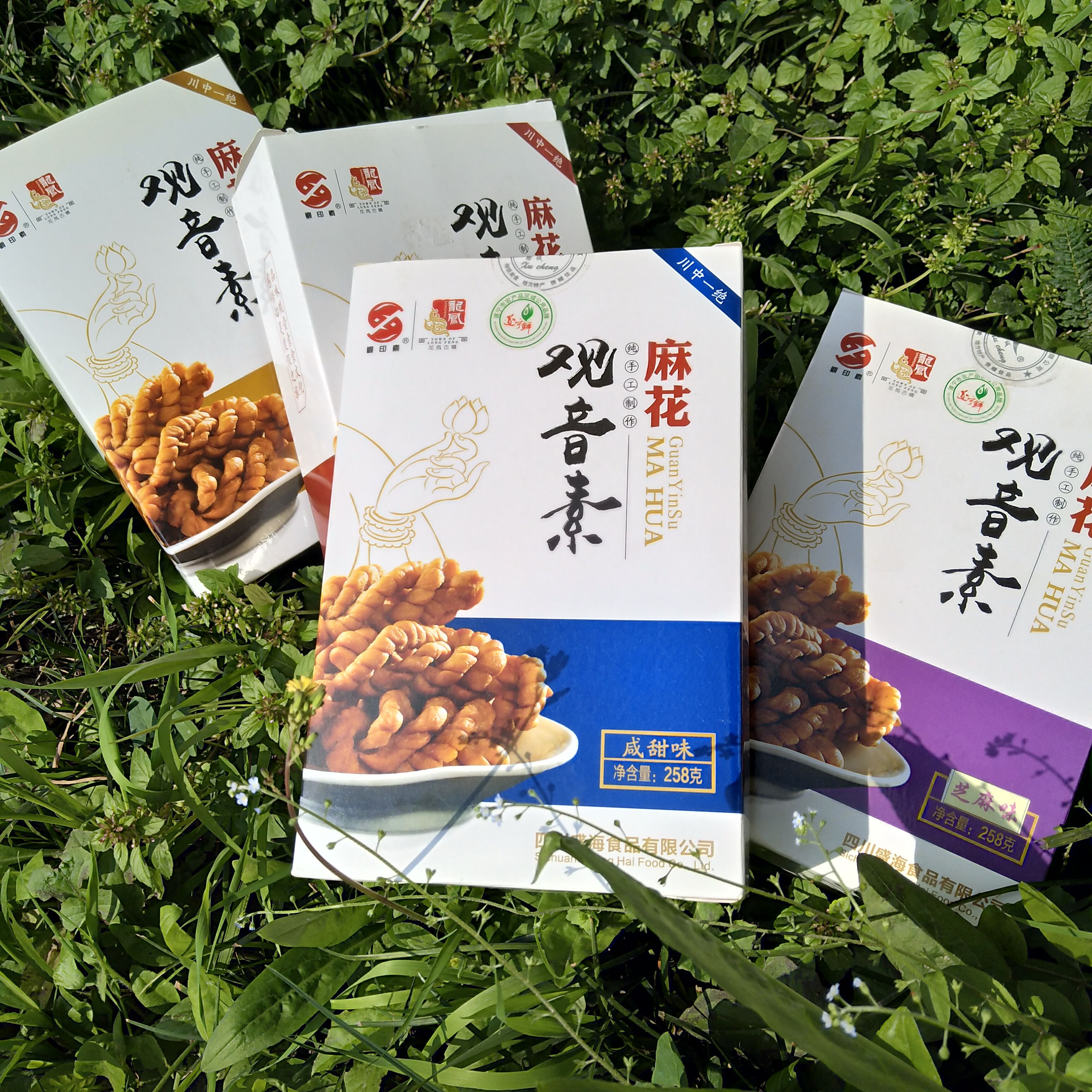 公司产品观音素(观印素)麻花选用老面,鲜鸡蛋和菜籽油,全程手工制作,成品的观音素麻花具有色泽金黄鲜亮、外形小巧精致,口感酥脆香甜、入口化渣,低糖健康、老少咸宜等特点。为了满足消费者的不同需求,观音素麻花在继承传统口味的基础上,进行了创新,从最早的原味,到现在的黑芝麻味,椒盐味、金薯味和咸甜味,一经推出就受到广大消费者的喜爱。
