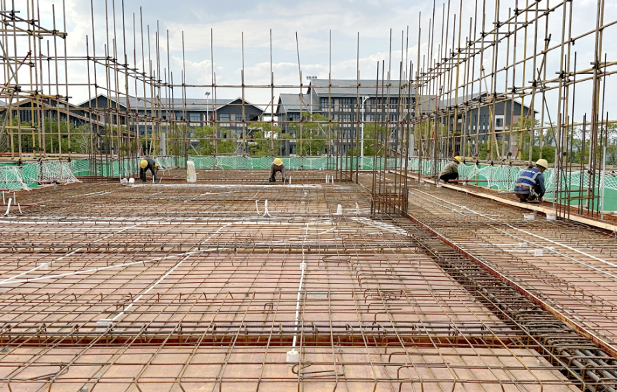 10月9日,位于遂宁高新技术产业船山园区内的遂宁市六中分校建设项目现场,100余名工人身着工作服,头戴安全帽,加紧进行钢筋绑扎作业,旋挖机、挖掘机、起吊机等大型机械设备紧张作业,地下车库桩基开挖、抗浮板施工等各项施工分区域同步展开。