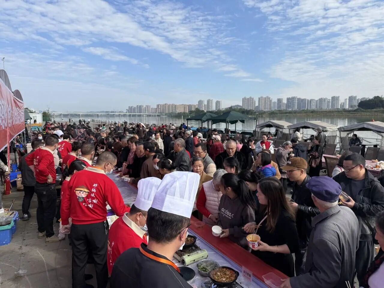 最热闹的当属砂锅宴体验区。长龙宴、船宴、创新宴等不同主题的砂锅美食一同飘香,砂锅牛肉、砂锅豌豆肥肠、香糯鸭掌、猪肚乳鸽汤、干烧茶树菇等特色菜品让人垂涎欲滴,等候试吃的队伍排起了长龙。品尝过的市民纷纷竖起大拇指,连连称赞:“太鲜了,这味道太地道了!”