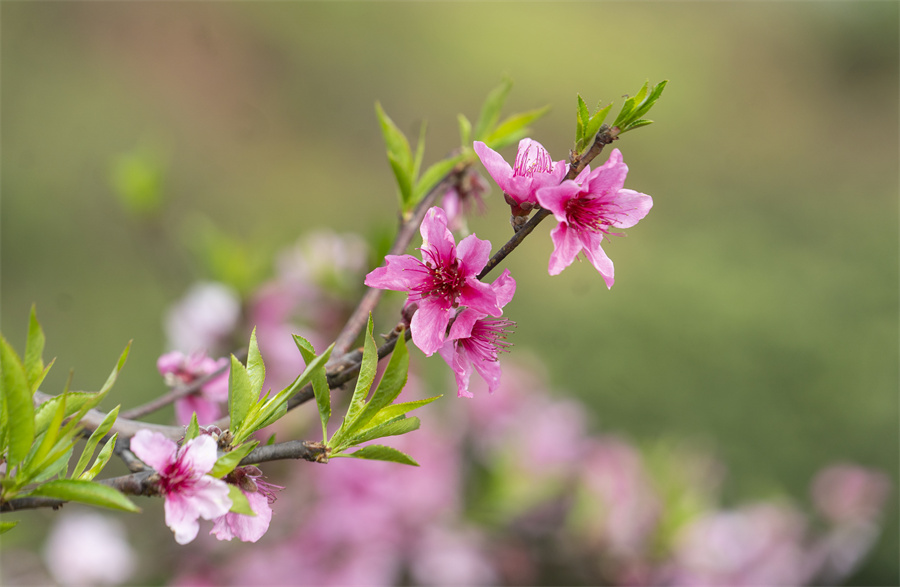 春光乍泄桃花开,在这美好的季节,似乎还没来得及看到桃树抽新芽,发枝节,朵朵桃花便急不可待地开了——春风传花信,花开不知年,定是最美的绽放。