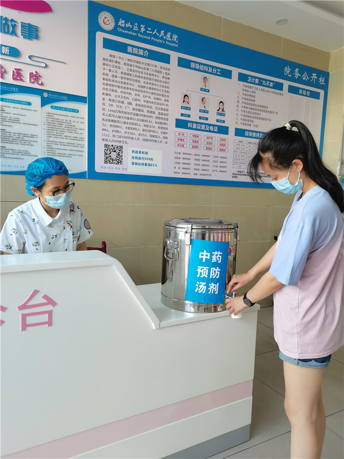 中医药是中华民族的瑰宝,在维护人民群众的健康中,具有不可替代的作用。《四川省新冠中医药预防建设方案》发布之后,船山区第二人民医院药剂科按照中医理论,采取扶正固表、益气养阴等治法调配药材,精心熬制中药防疫“大锅汤”。采取宣传推广、主动配送、预约定制等多种方式,免费向辖区企事业单位、居民群众提供中药防疫“大锅汤”暖心服务,以增强体质、提高免疫力,降低新型冠状病毒的感染风险。